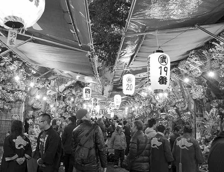 新宿花園神社にて大酉祭。境内には熊手をあつかう約60店舗。